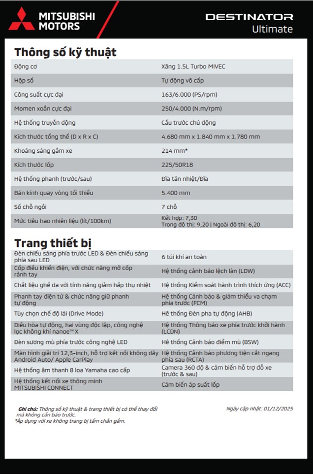 Được trang bị các tiện ích hiện đại, cùng triết lý Omotenashi, New Mitsubishi Destinator sẽ đáp ứng đầy đủ và trọn vẹn các nhu cầu sử dụng hàng ngày của bạn. Nâng tầm phong cách sống.